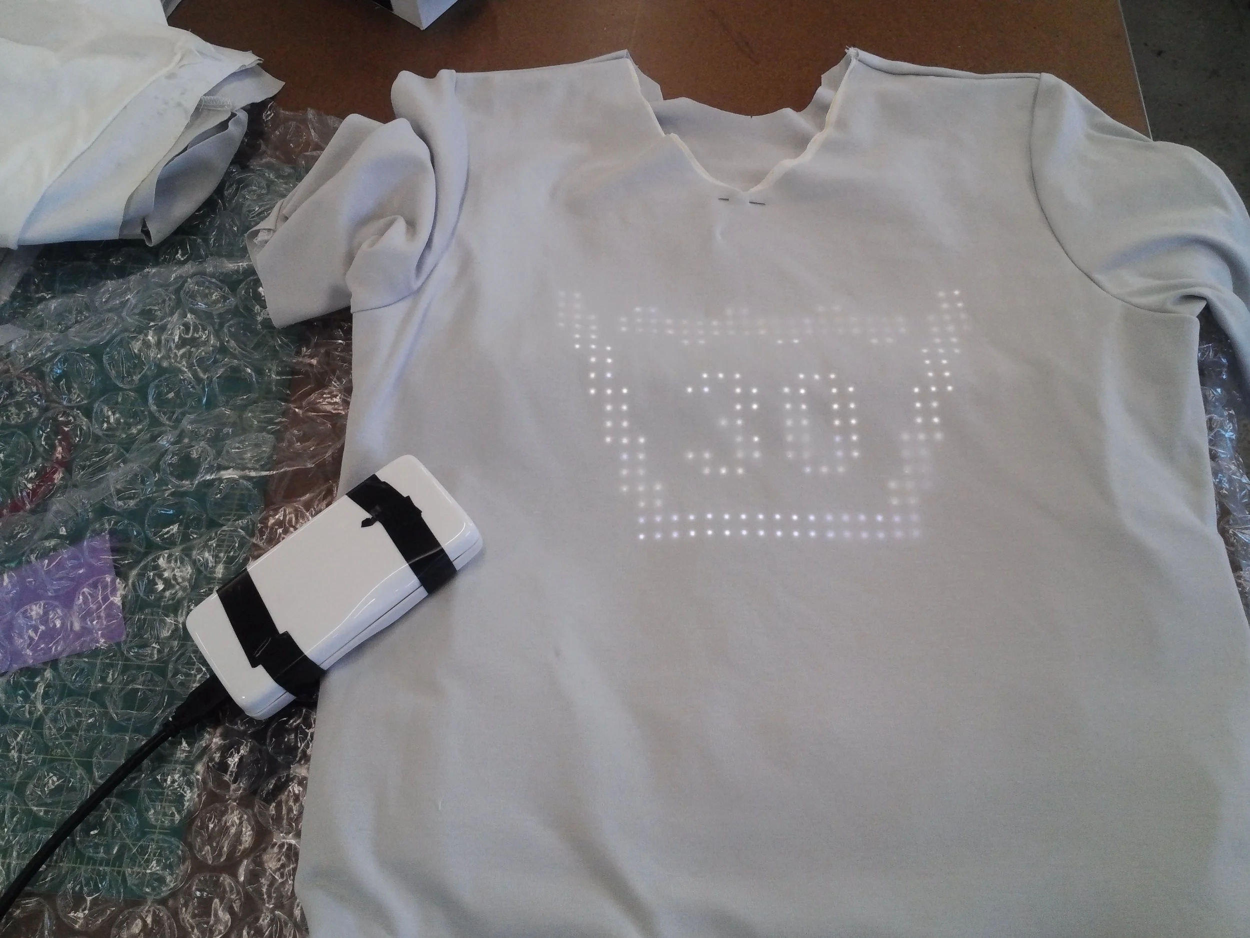 The result is the first-ever washable, wearable display innovated and produced in less than nine months and on budget. The shirts were delivered around the world as part of a promotional campaign. The tshirtOS Android software allowed the customer to change the text, animation, or design of the shirt on demand.