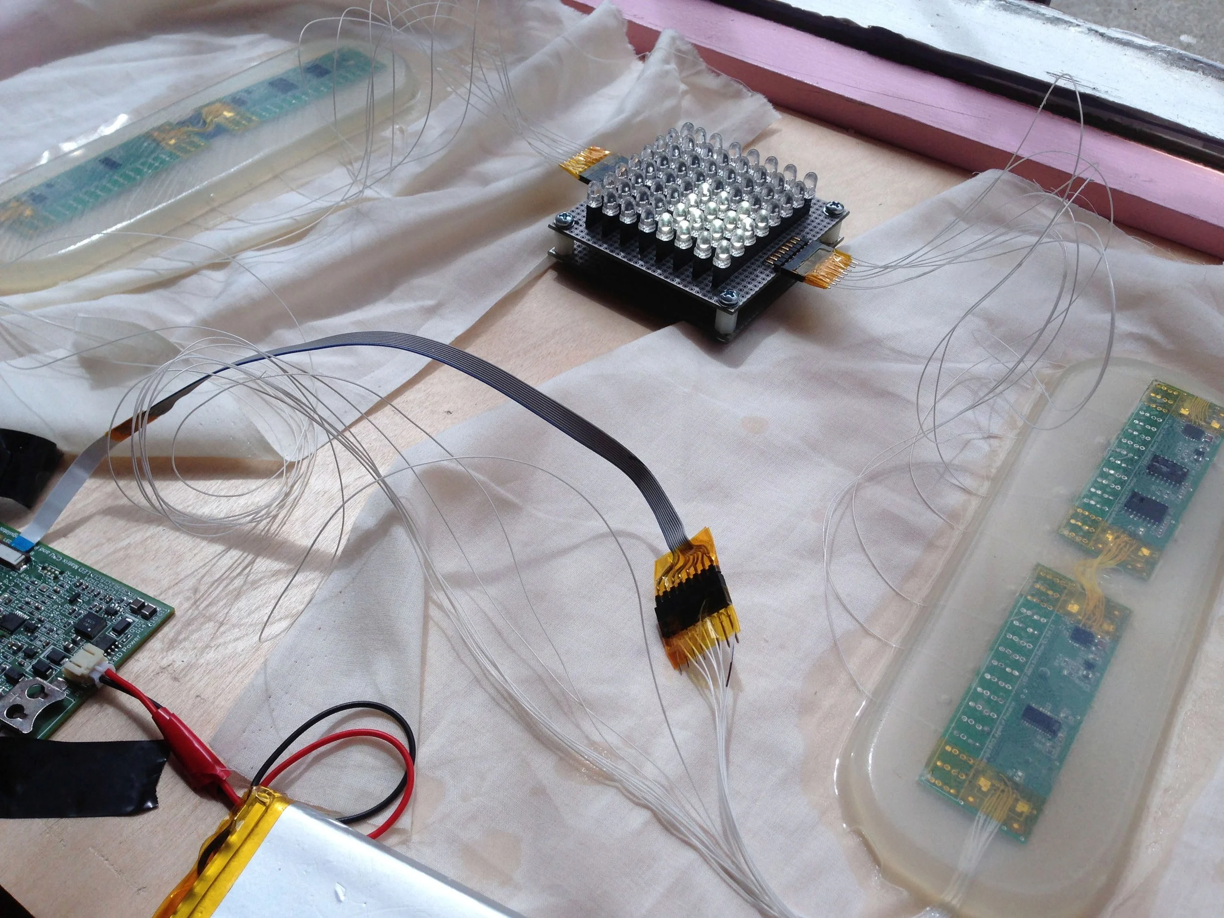 We first defined the necessary parameters with Ballantine's team to understand our MVP and align expectations. Then, we built multiple non-functioning prototypes to test weight, material, fit and LED location. Next, we prototyped the hardware with rigid PCBs before transferring it over to the specialized LED thread circuits (designed by Switch Embassy and produced by Forster Rohner Textiles). The process included prototyping, user testing, production and manufacturing, software development, and Quality Control measures and guidelines. The project took nine months from concept to delivery.