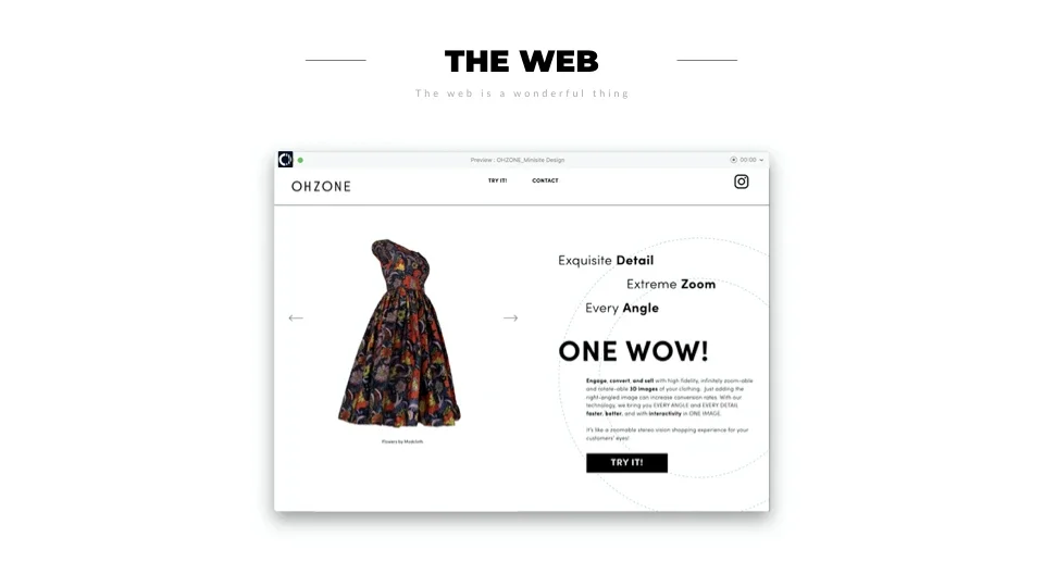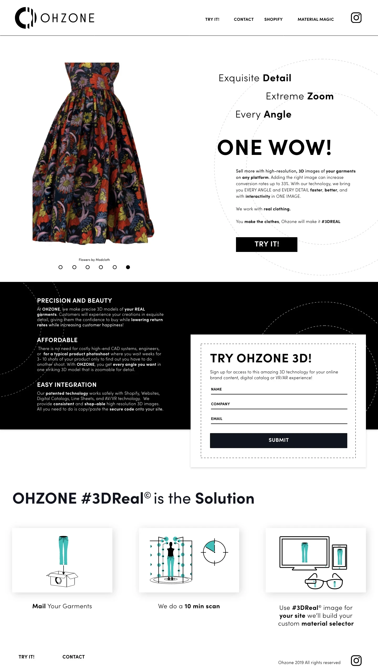 OHZONE Inc. transforms real garments into high fidelity 3D models in digital space for an exceptional online shared shopping experience for catalogs, marketing, virtual fit, try-on, and content. They capture every exquisite detail in one zoom-able, rotate-able image for mobile, web, and with AR/VR technology. The aim is to lower the barrier of entry for fashion brands to create 3D images for the full 3D e-commerce shopping revolution.