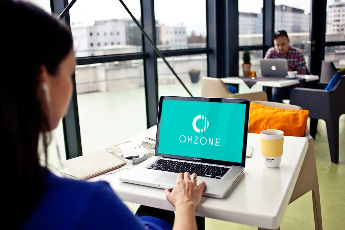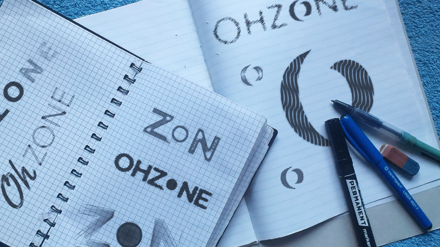 WOW! is usually how people respond when they see the product the first time and when they zoom in. The folds are designed from pleats as of the details. The multiple of 3 symbolized the zoom, resolution, and angles that make OHZONE so beautiful to use. Light, rounded sans serif font was used for lettering. The logo works in both B&W and with a smart aquamarine color scheme for a modern feel.